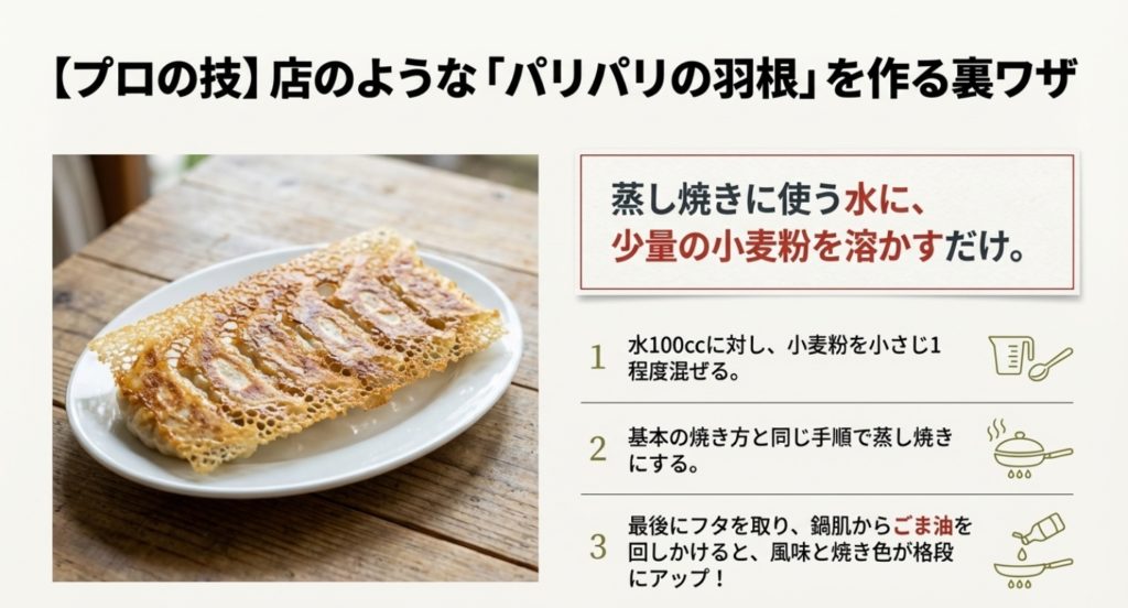 お店のような「羽根つき餃子」にしたい場合も、ちょっとしたコツがあります。
