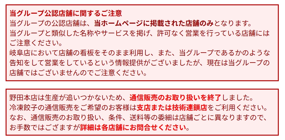 似た名前や似た形の餃子を出していても、公認ではないお店もあるため注意が必要です。